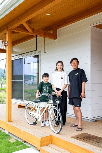 ご主人様の仕事がテレワークと併用の為ワークスペースが欲しかったのと、釣りが趣味で道具が多いので収納するガレージがマストだった。ご夫婦ともに木の雰囲気が好きでログハウスも検討したが、BinOの規格住宅を知って、沢山あるプランの中から自分達の理想の暮らしにピッタリだと思い、弊社に決めた