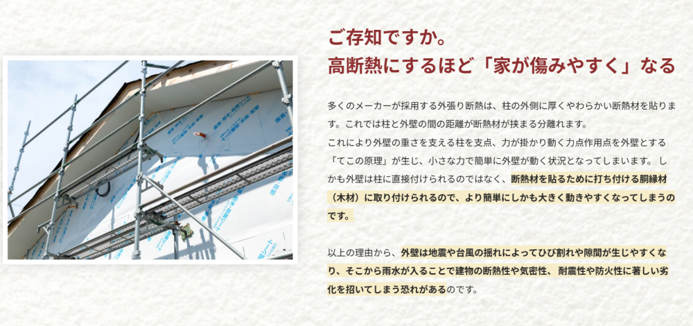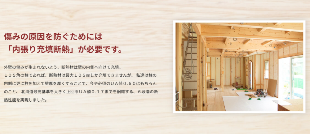 高断熱にするほど「家が傷みやすく」なる。傷みの原因を防ぐために「内張り充填断熱」という、従来の断熱の常識を覆す「断熱工法」を開発しました。