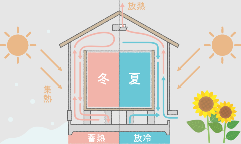 夏を涼しく、冬暖かい室内環境を整え、住空間を快適にする「壁体内空気循環システム」のエアサイクル住宅「団欒」を主に手がけております。