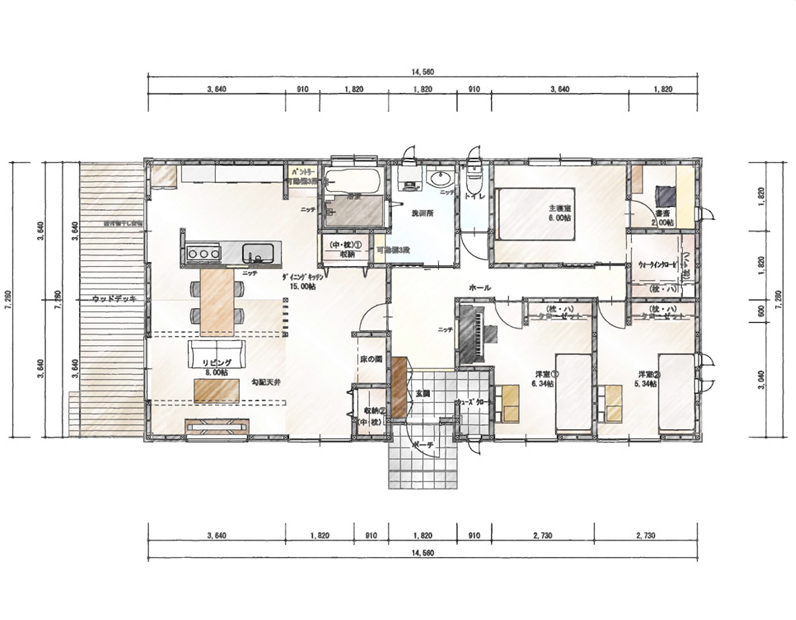 また、木材の仕入れルートを活かし自然素材の無垢材をふんだんに使い、