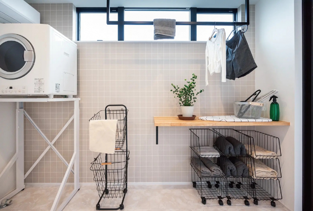 「洗濯・乾燥・たたむ」がここで完結する便利なランドリールーム。そばにはファミリークローゼットもあり、収納も楽々です。