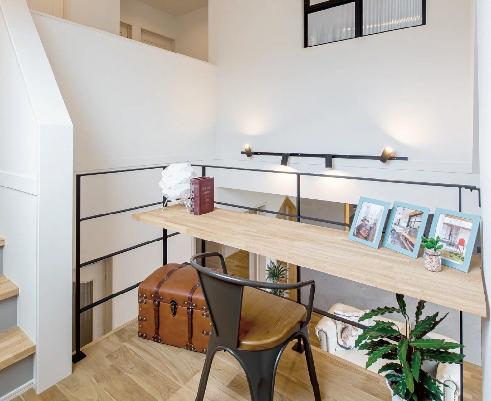 PCコーナーや読書・スタディコーナーだけでなくSOHOスペースとして活用できる、6帖の広さを備えた便利なスキップフロアです。