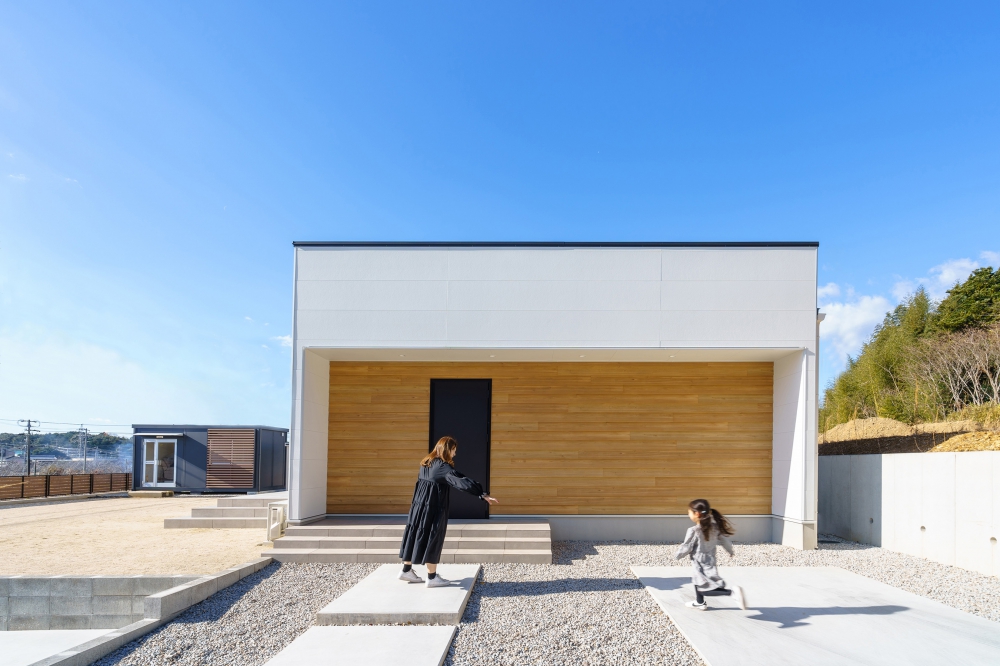 片流れ屋根に真っ白な外壁が映える、凛とした佇まいの住まい。