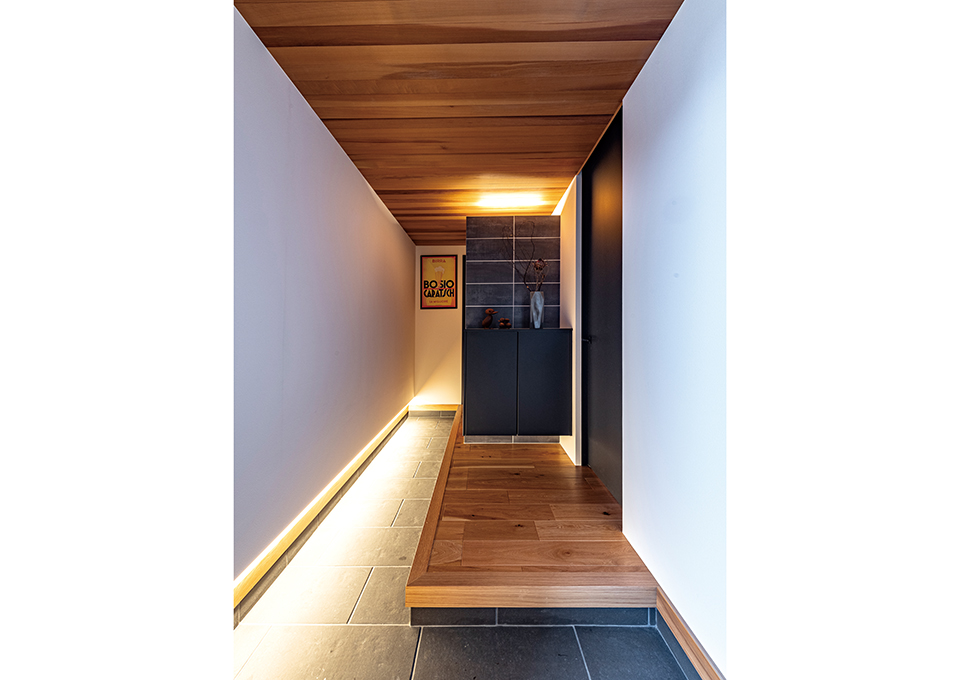 「プライバシーの保護を大切にしたい」というご希望がありましたので、玄関が道路に面さないようにしたり、1階の居室は窓の位置を高くしたりと、弊社の設計自由度の高さをフルに活用して、工夫を凝らしました。