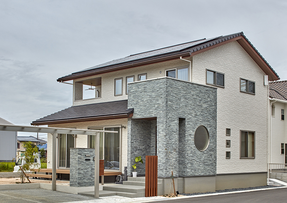 玄関まわりに天然石を用いたりと、外観にもHさんご夫妻のこだわりが詰まっています。