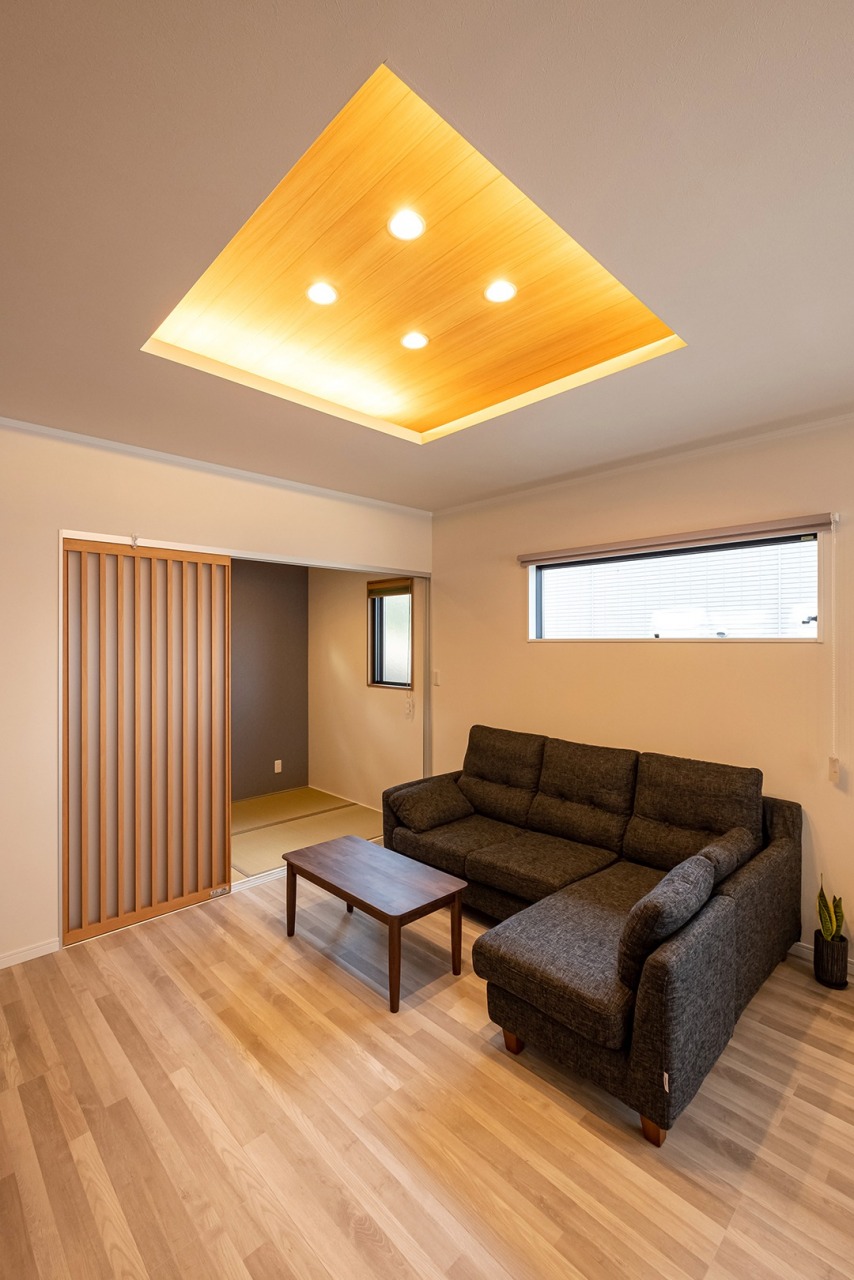 今人気のある平屋のお家。 ナチュラルテイストにコーディネートされ、明るく開放感のあるLDKになりました。 LDK横にある洋室の3枚引き戸を開けると、22帖の広々空間としても利用可能です。