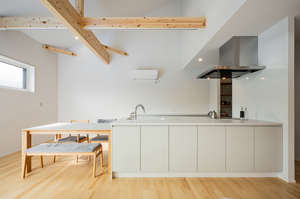 各々が違うことをしていてもキッチンを中心に「食」を通して家族が繋がる暮らし方がしたいというお施主様の夢を叶えた住まいです。