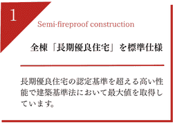 全棟長期優良住宅で、標準仕様も充実。地震や火災に強い高気密・高断熱でランニングコストにも配慮された「デザイン×性能」どちらも諦めない、理想の住まいを提供いたします。