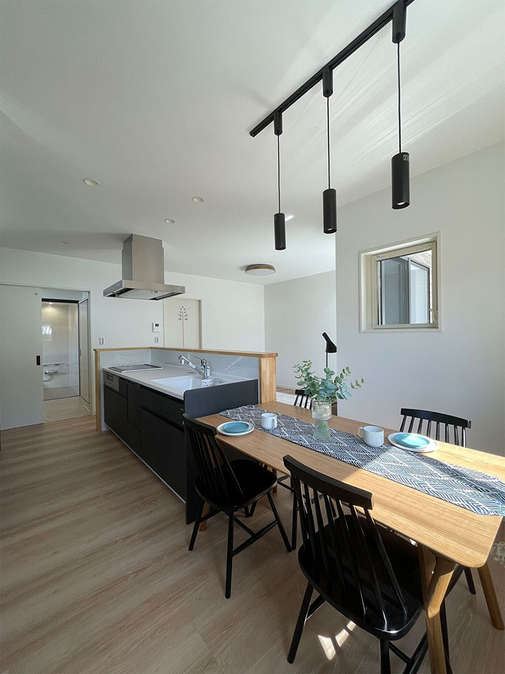 ①無駄がなく洗練されたモダンなインテリアに、自然素材や色合いなど北欧インテリアの持つやさしさや温もりの要素が溶け込んだスタイル。