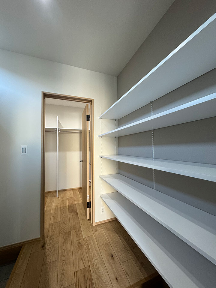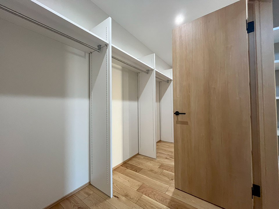 ③2階主寝室には回遊できる大容量のウォークインクローゼットを配置。実用性と利便性を兼ね備えたデザイン。