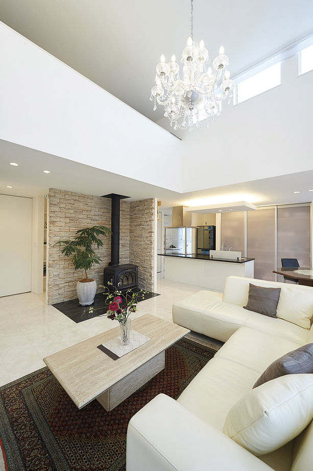 リビングは27帖の広さと吹き抜けが魅力の開放感溢れる空間。
