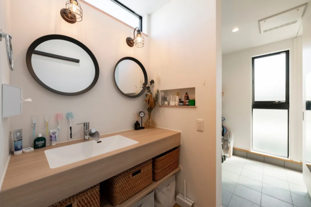 洗面所やキッチンは好みのテイスト・デザインでカリフォルニア&リゾートな空間を実現。
