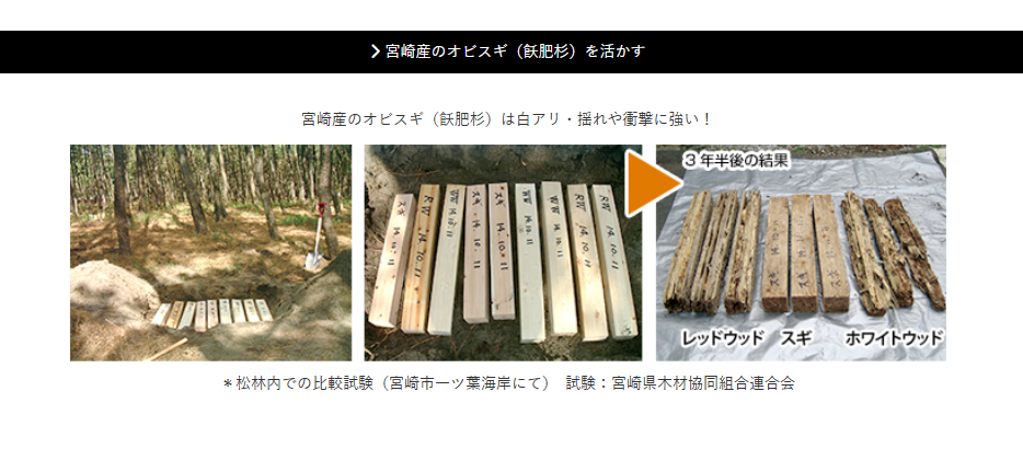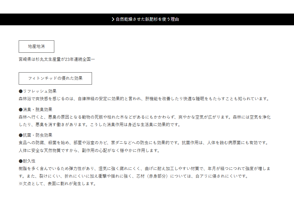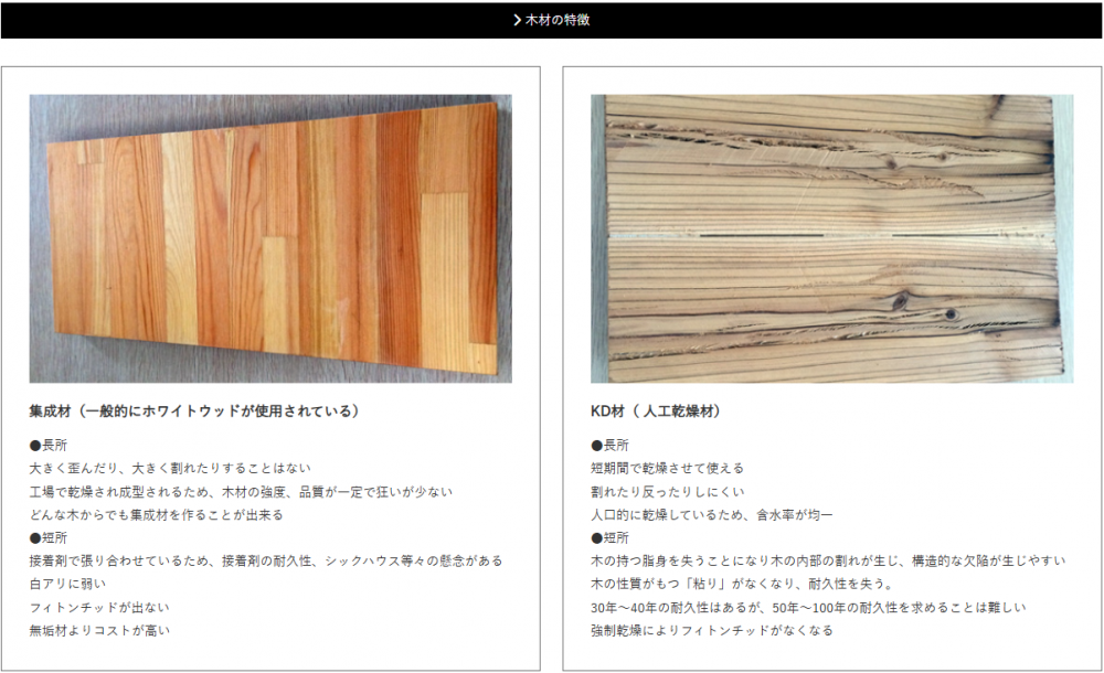 木材は安心・安全な自然乾燥の県産材を使用し、大工は全員自社所属で最新の技術を持った職人が行います。