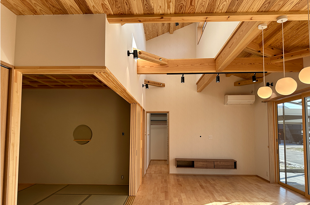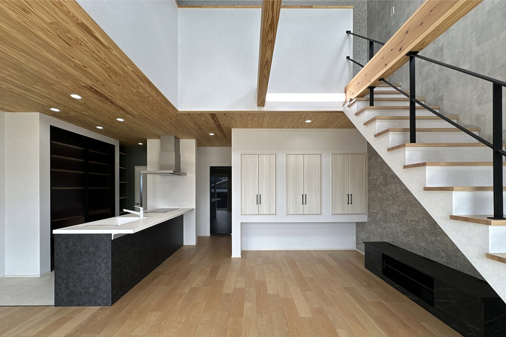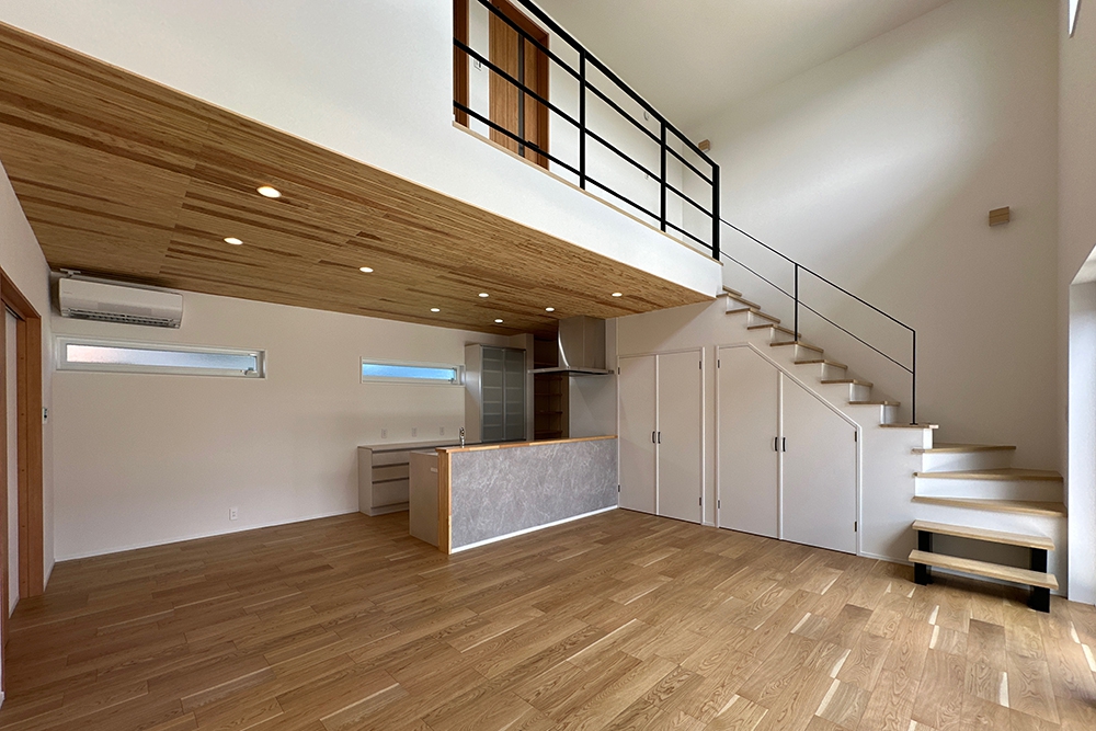 天井高く「木」の素材の良さを感じられるような家。