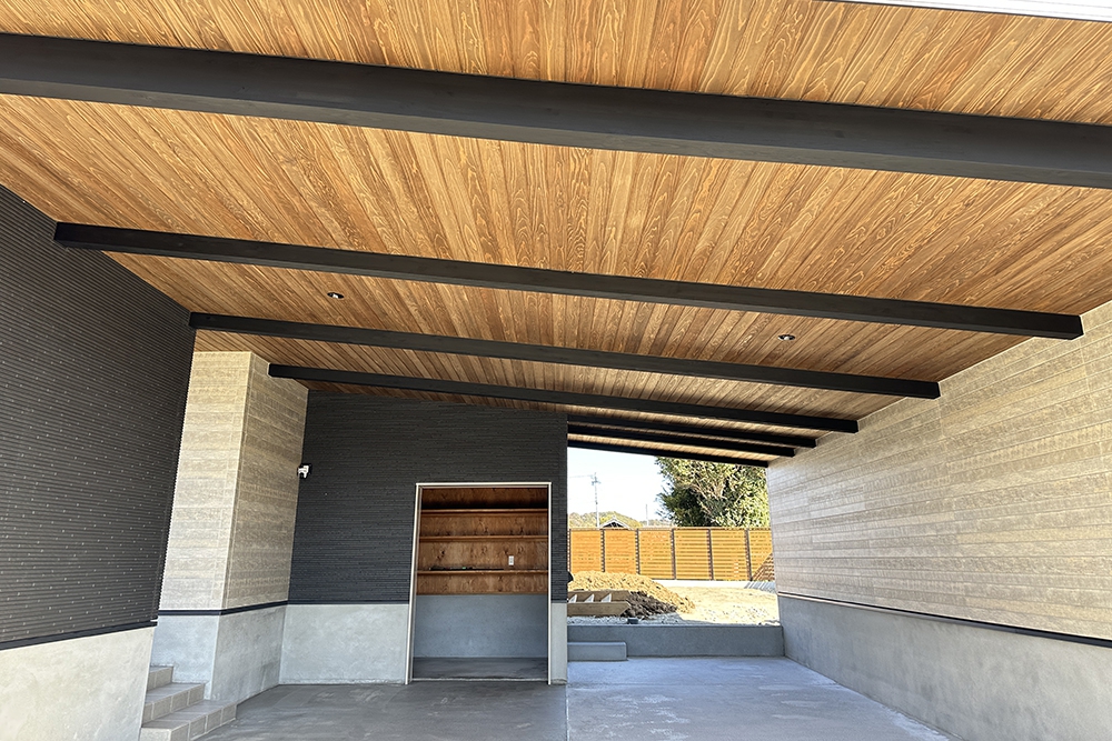 ずっと夢だったビルトインガレージと軒天の杉板がきれいで、お気に入りです。