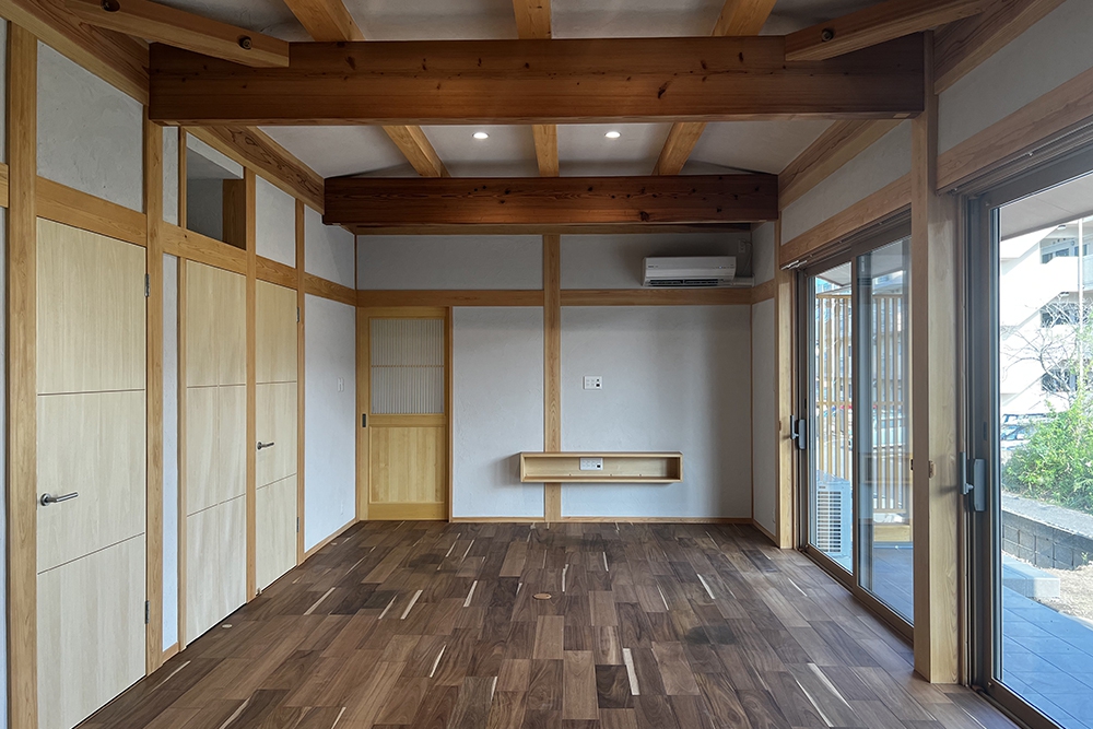 シラスの塗り壁とすることで開放感があり、どの季節でも過ごしやすい空間にしました。