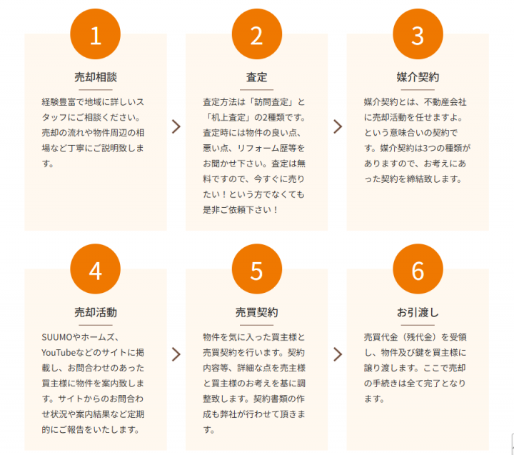 媒介契約締結から約半年程度を目安にすると良いです。一般的には約3ヶ月を目標に行われる事が多いですが、弊社はその期間にとらわれすぎない方が良いと考えております。お客様の状況によって売却期間はご提案させて頂きますので、お気軽にご相談下さいませ。