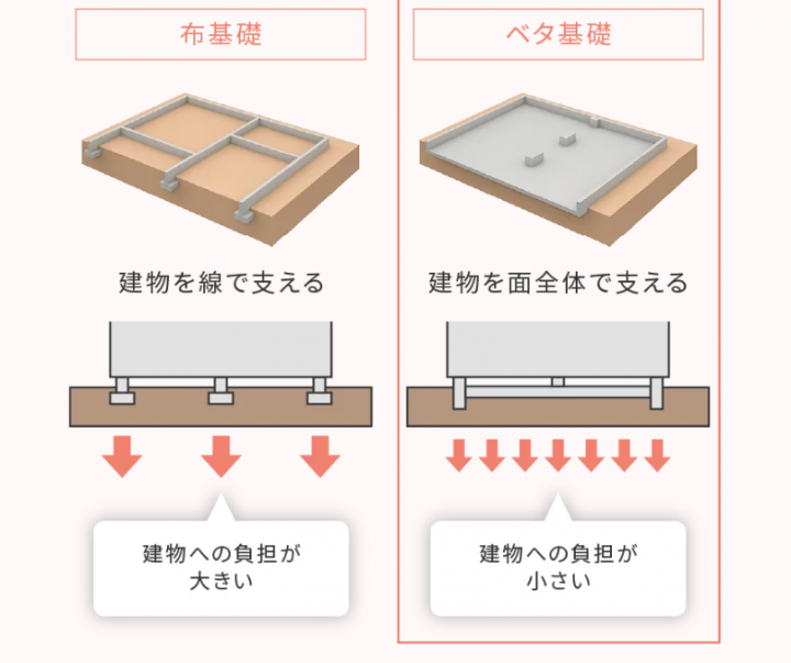 建物を面で支える強度の高いベタ基礎を採用
