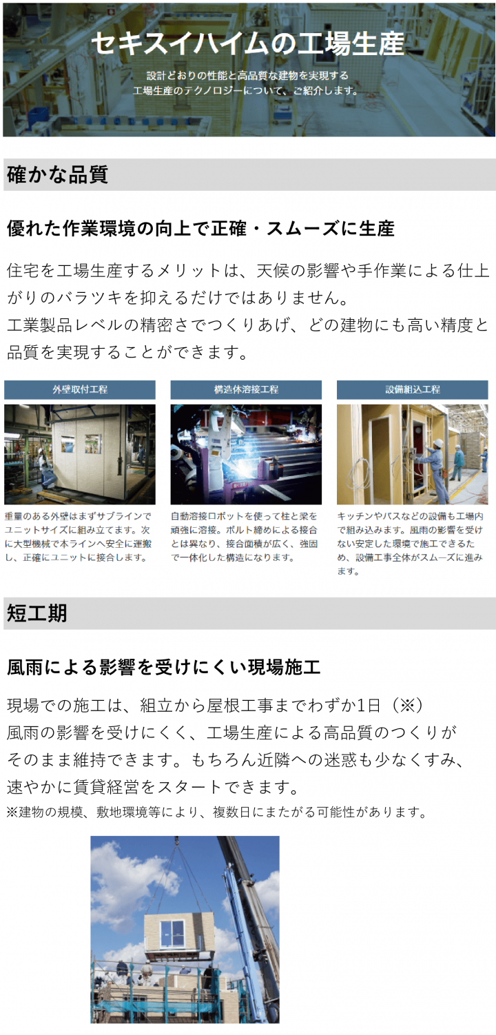 セキスイハイムの工場生産