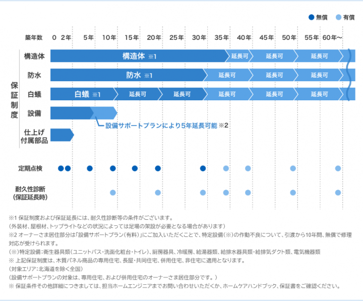 構造体や防水、白アリなどにおいては業界の一歩先行く初期保証制度を整えています。