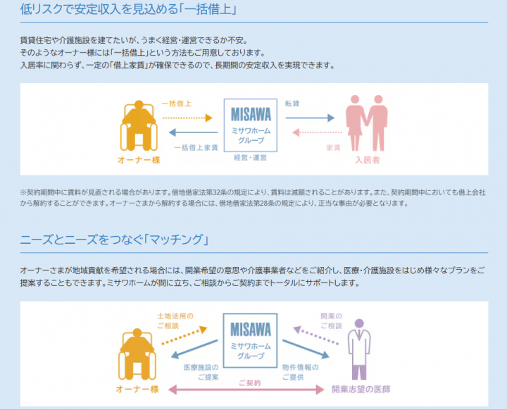 ミサワホームでは、例えばオーナー様に経営や施設運営などの専門的な知識がなくても、