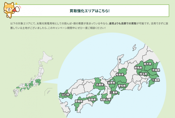 ①太陽光用地として高額査定