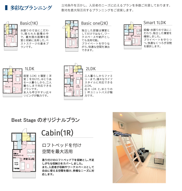 Cabinは、BestStageのオリジナルプランです。空間を最大限活用し、収納力をカバーしています。
