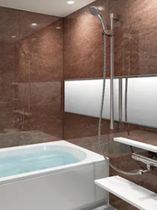 (デザイン・仕様が自由で変形の浴室向き。工期がかかる場合がございます。)