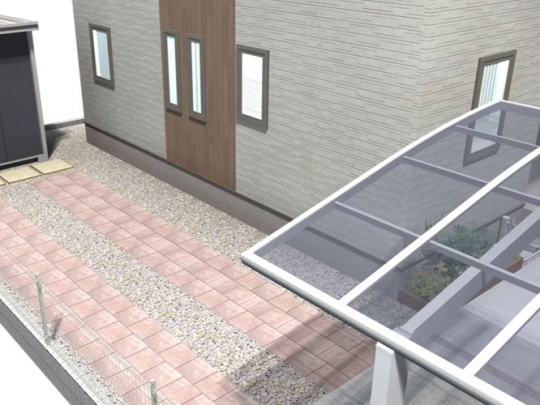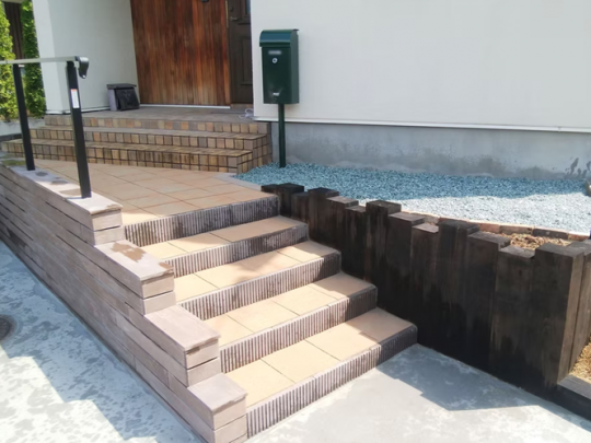 インターロッキングブロックを敷くことで、歩きやすくなり荷物移動も楽になります。
