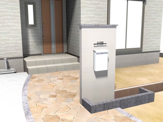 門壁・表札・ポスト・ミニ花壇を設置。