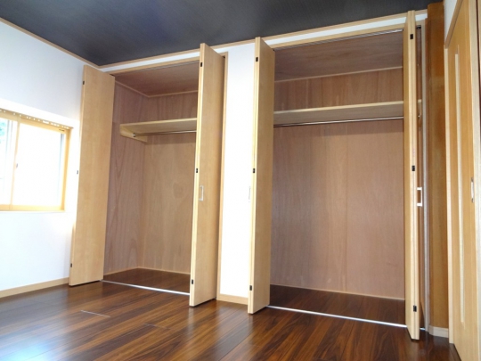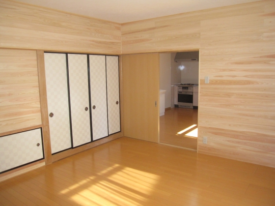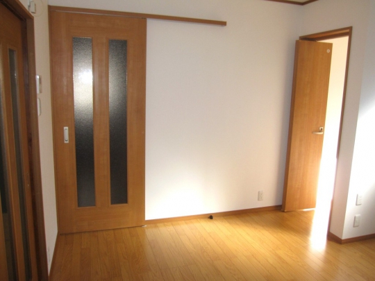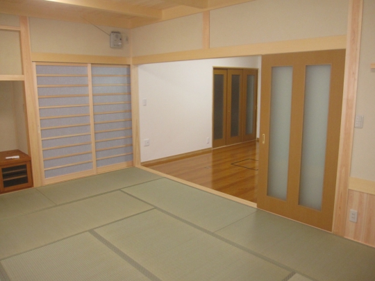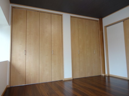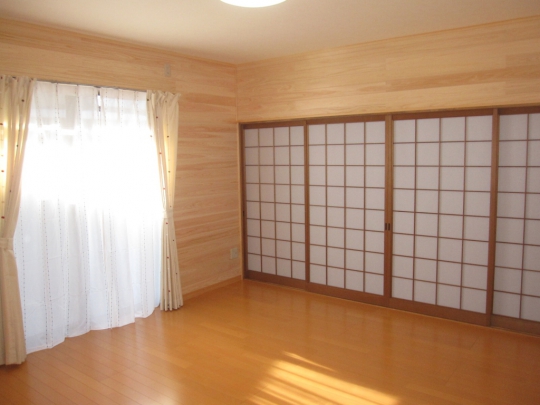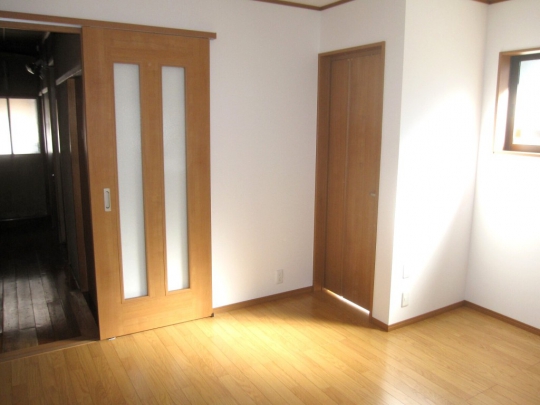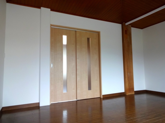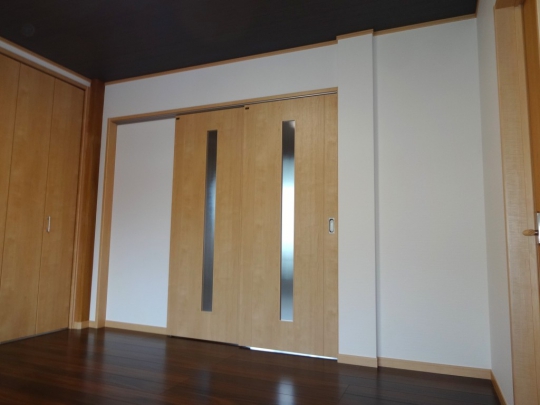 和室と洋室の二間続きの部屋を洋室二間にリフォームしました。間仕切り扉には上吊の2本引込戸を使用し、開口幅を広くとるように考慮しました。