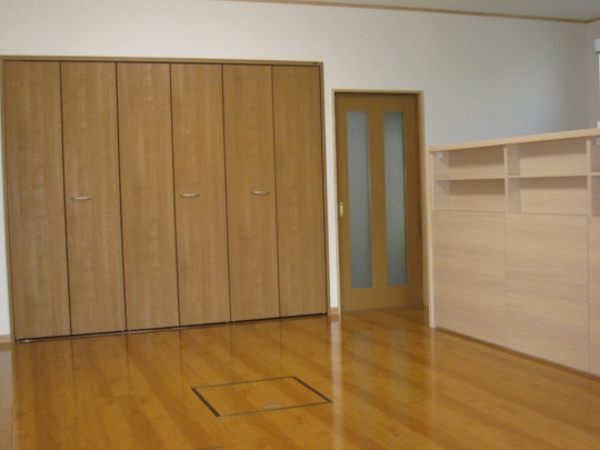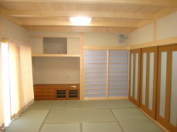 2、居間には造り付けの神棚やテレビボードの設置により、空間を有効に使うことができます。