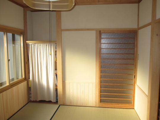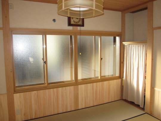 内窓を設置し、断熱性を向上しました。床と天井も張り替えて、明るい内装になりました。
