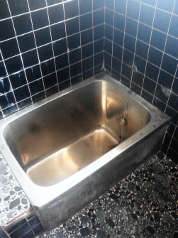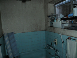 【改修前】昔ながらの在来風呂。タイルの目地が切れたりして水漏れの形跡もありました。 浴槽の保温能力が弱く、浴槽に貯めたお湯が早く冷めてしまうので何度もお湯を足して使っていたようです。