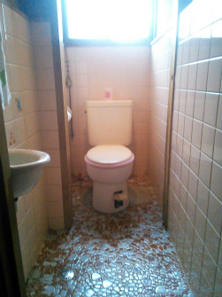 【改修前】昔ながらのタイル仕上げのトイレ。 綺麗に使っていたようですが、タイルの目地などに汚れが付いて取れない部分などが気になる。他にも便座に機能が全くついていないのは不便。