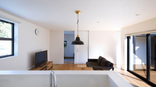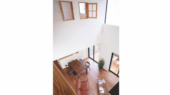 吹き抜けをとって、上下間のつながりある空間を作るのも魅力的です。