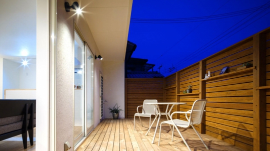 ウッドデッキの階段でのんびり読書をしたり、