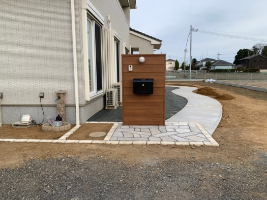 お客様とは、お時間をかけてのプランになり、コストを抑えて、職人に任せる部分とご自身でDIYで出来ることや将来的にウッドデッキなどを考えたスペースなどを考え、門周りとアプローチに絞ったプランでの施工にになりました。
