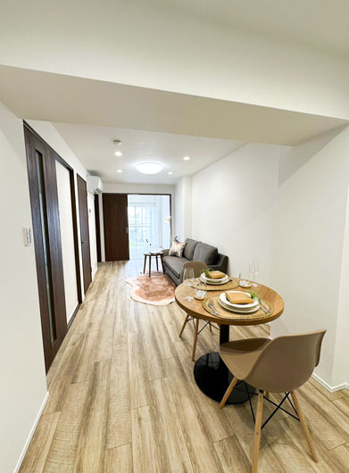 リビングと洋室に一体感が生まれ、普段は扉を開放すると広い空間になり、来客時などは扉を閉めればプライベート空間になります。