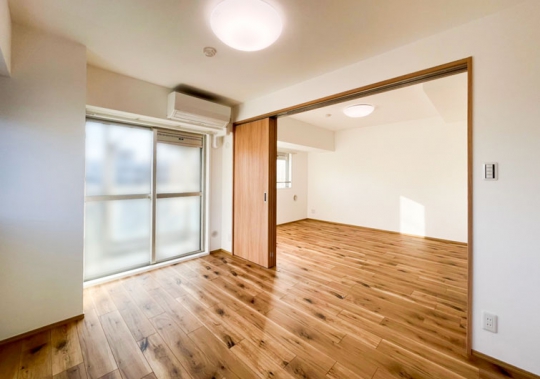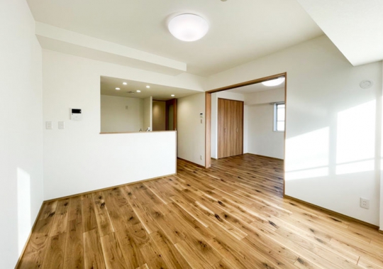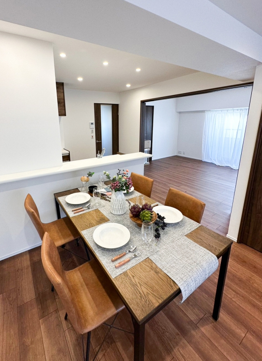 和室を全て洋室に変更。リビングに隣接する洋室は引戸にし、開放するとキッチンから続く広い空間になります。