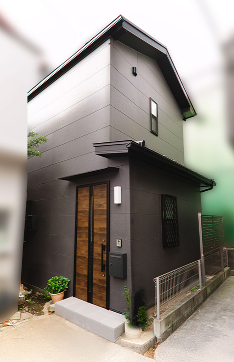 【外壁外装・屋根】ブラックの外壁を採用し、モダンな印象に生まれ変わりました。標準仕様に含まれる耐震工事と屋根の軽量化によって耐震性も大きく改善