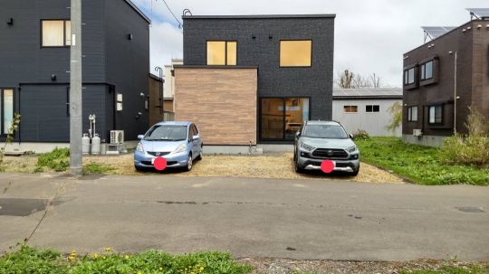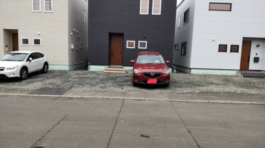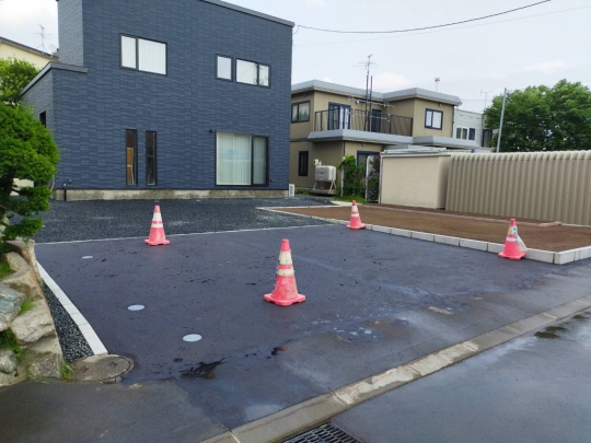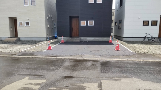 お客様からのご要望で駐車場スペースをアスファルト舗装にしました。