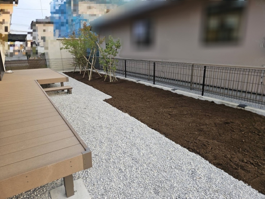 新築外構工事をお願いしました。プランニングは、専用ソフトを使いながらの打ち合わせだったので、完成型のイメージがしやすかったです。また、プラン提示や修正も他社に比べ迅速に対応頂き、スムーズに進められました。費用面でも比較的安価な材料への変更提案や施主支給にも協力していただいたので、想定していた金額より50万円程度費用を抑えることができました。施工も丁寧で、特に土間コンクリートの仕上がりが良く、大変満足です。新築したハウスメーカーに外構工事完成後の仕上がりを見てもらい、かかった費用を伝えたところ、仕上がり具合とコスパの良さに驚き、業務提携したいとおっしゃっていました。外構工事には、お勧めの会社です。