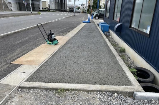 静岡でNo.1売上の車屋さんのご依頼で雨が降るとベチャベチャしてしまう箇所をコンクリート施工をと言う事で、周りが既に決まっていたので水勾配が難しいと言う事で、雨水を浸透させるドライテックコンクリートを採用しました。