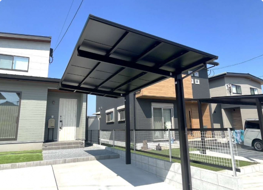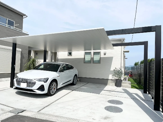 フラットデザインのシンプルなカーポートで、どんなお家でも調和します。