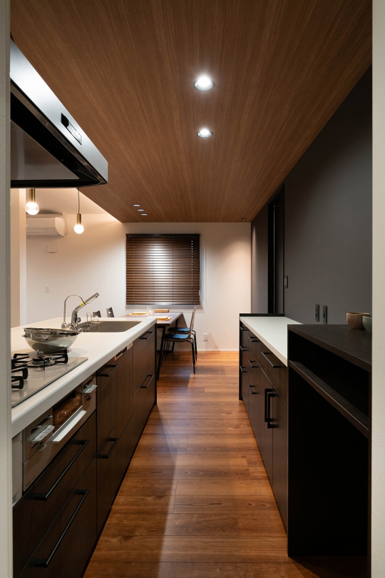 親世帯は和モダン、子世帯はシックなテイストで内装を分け、それぞれの暮らしに合った間取りと水回りを実現。