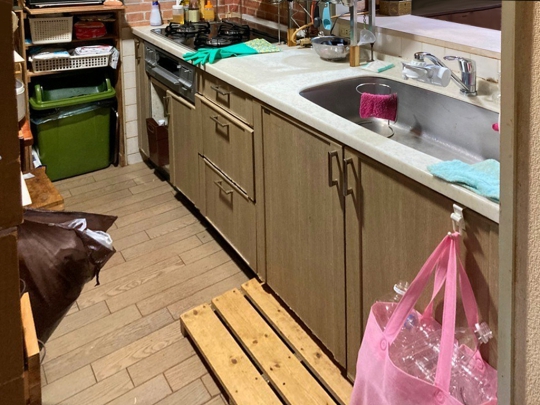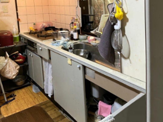 現地調査に伺った際、フライパン、鍋等が多く外側においてあり、