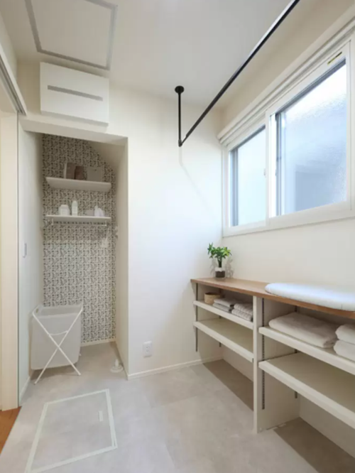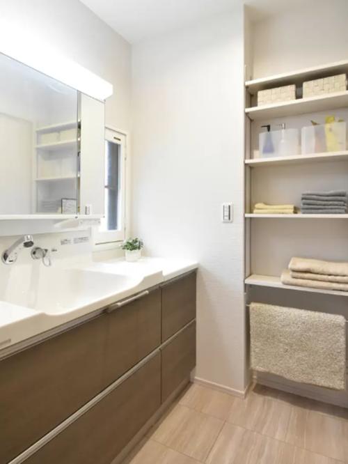 洗面と脱衣室を分け、洗濯がスムーズに行えるようカウンターも新設。
