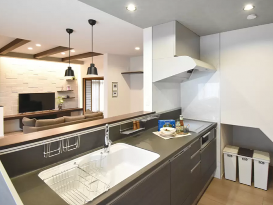対面キッチンにすることで、料理中も家族の様子がわかり自然と会話が弾み、