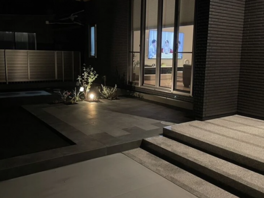 お庭を照らす照明やデザインのアクセントとなる植栽などを利用して、